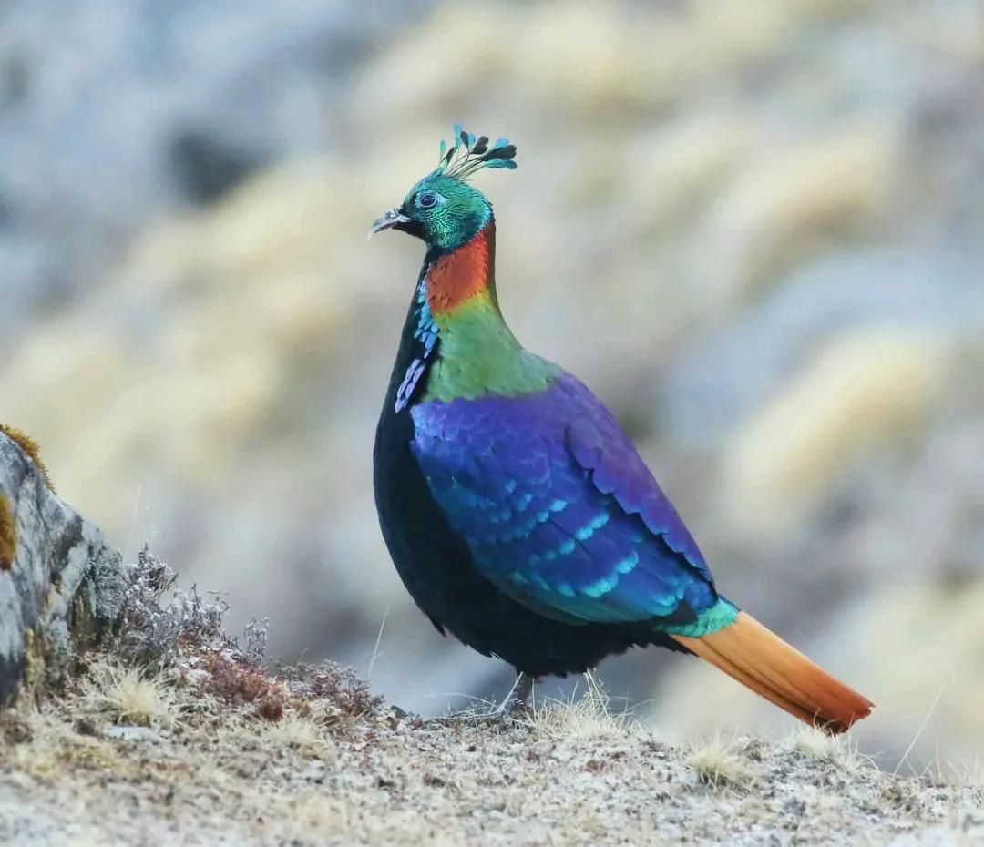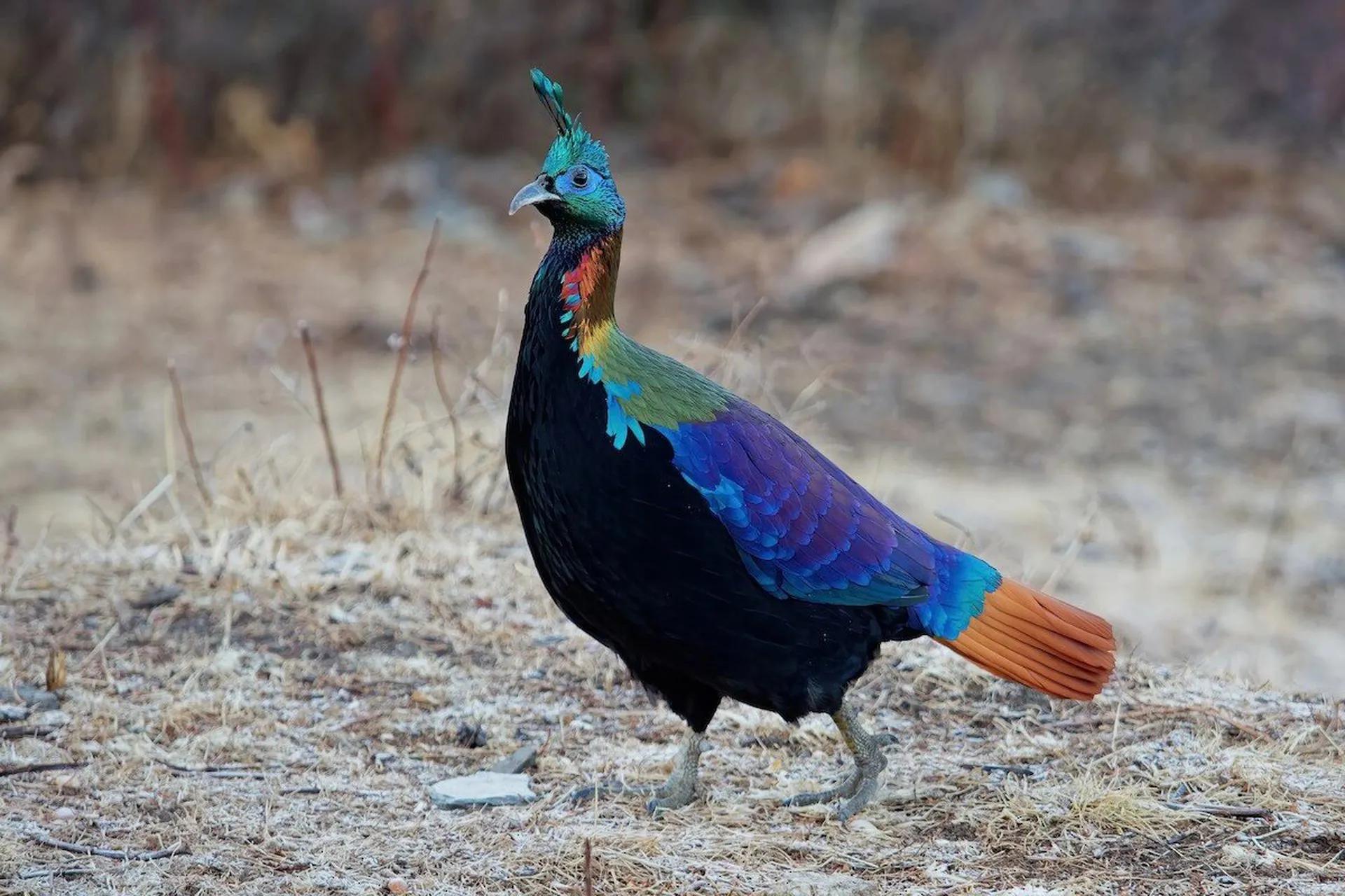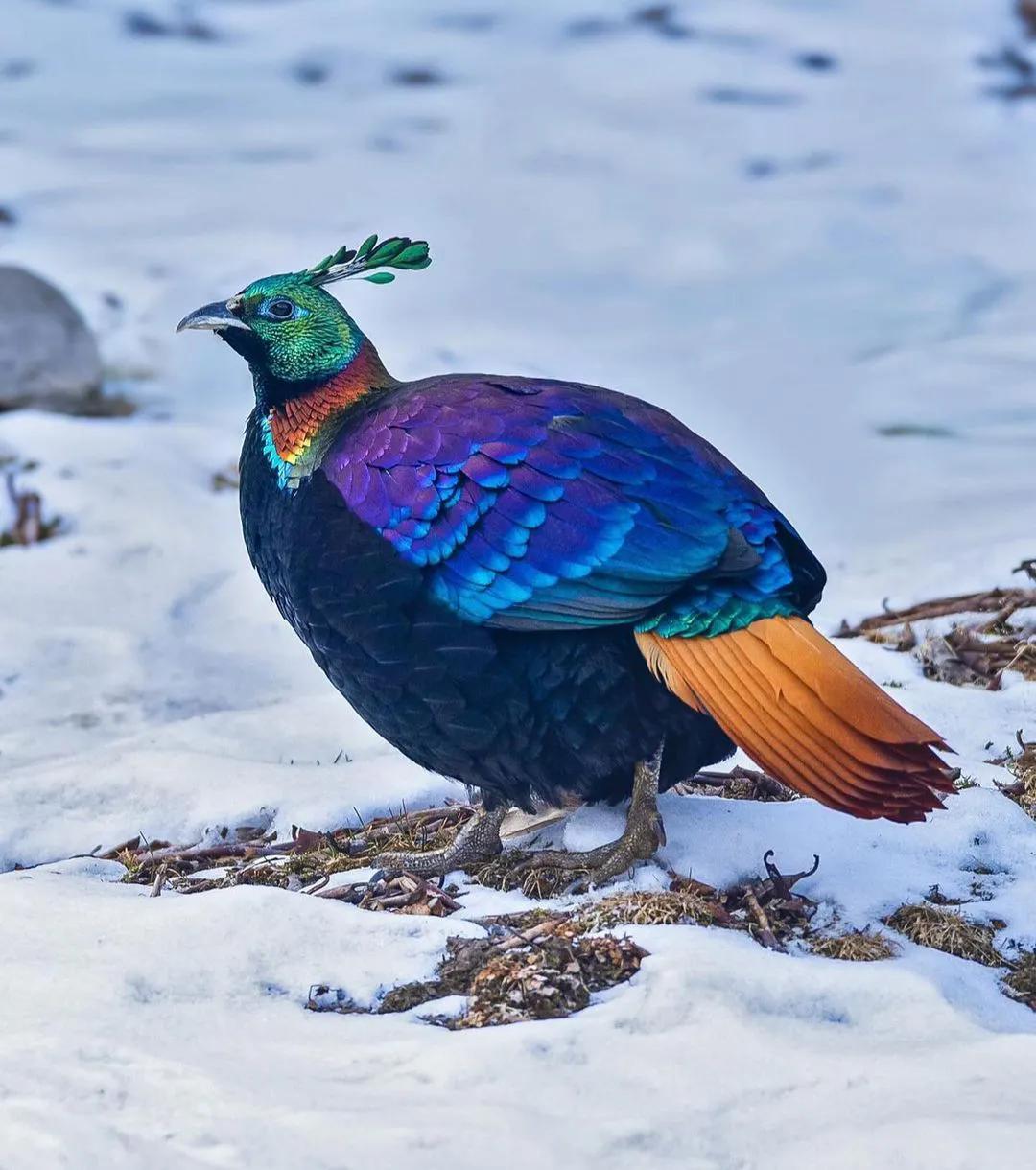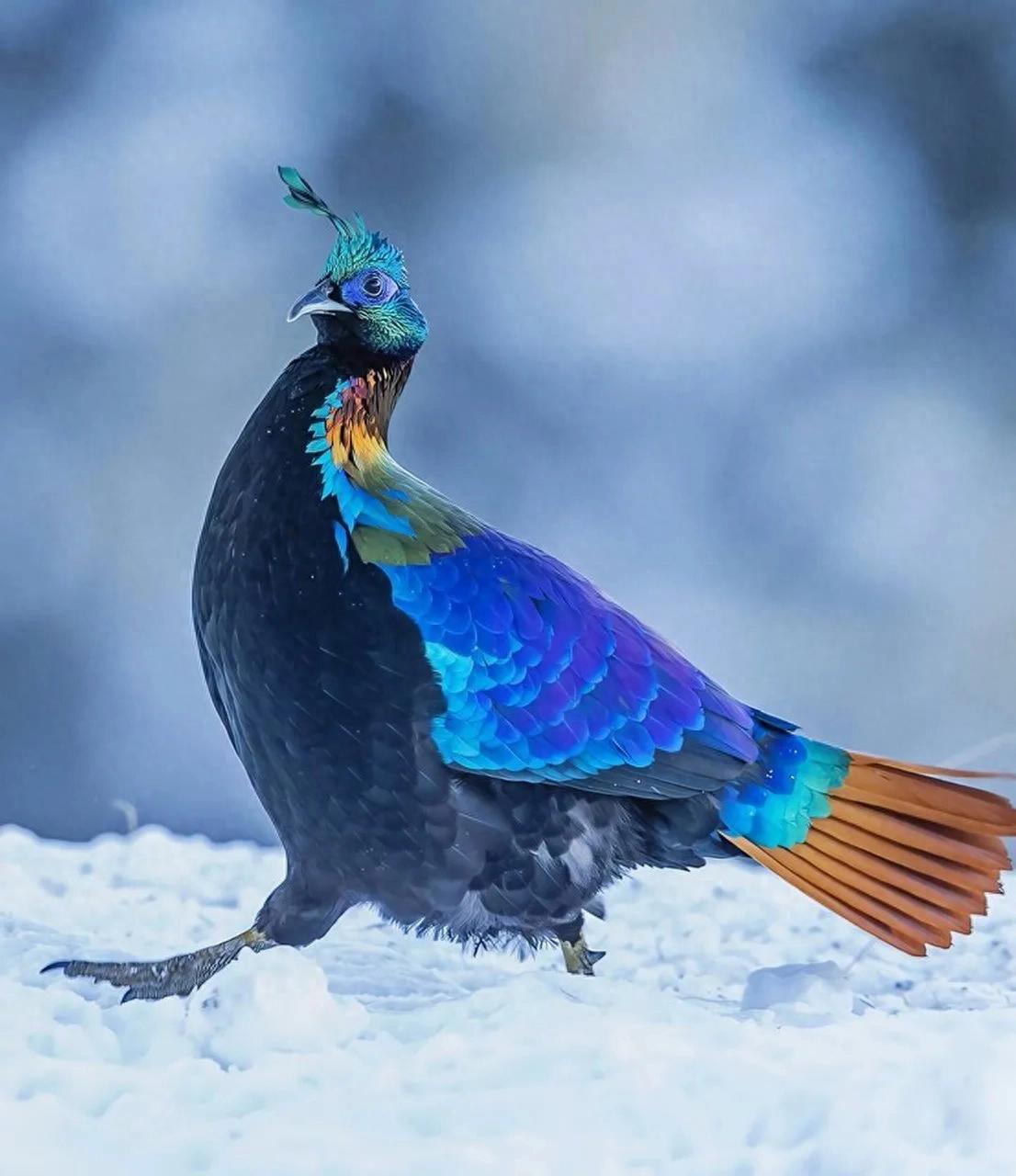 棕尾虹雉:鸡形目、雉科、虹雉属鸟类,属大型鸟类,体长70厘米左右普惠配资,体重约2千克。其在国内分布较为狭窄,主要分布于西藏的南部以及东南部普惠配资,是典型的高山鸡类,栖息于海拔2500-4500米之间终年云雾缭绕的高山针叶林、高山草甸以及杜鹃灌丛中普惠配资,尤其喜欢开阔的山坡阔叶林、混交林、针叶林以及林缘地带。