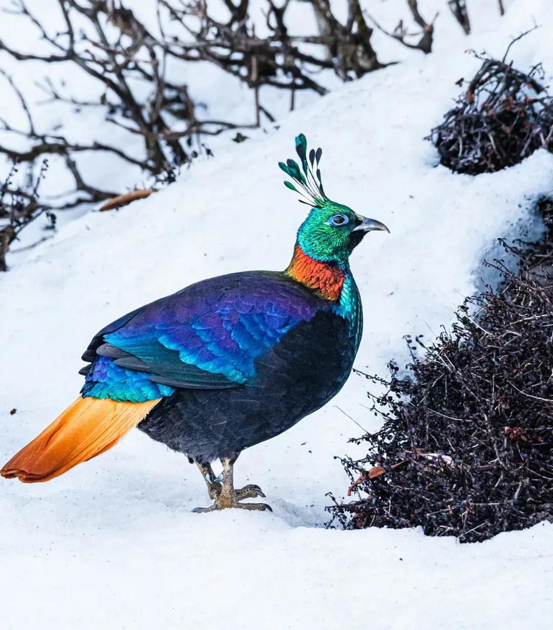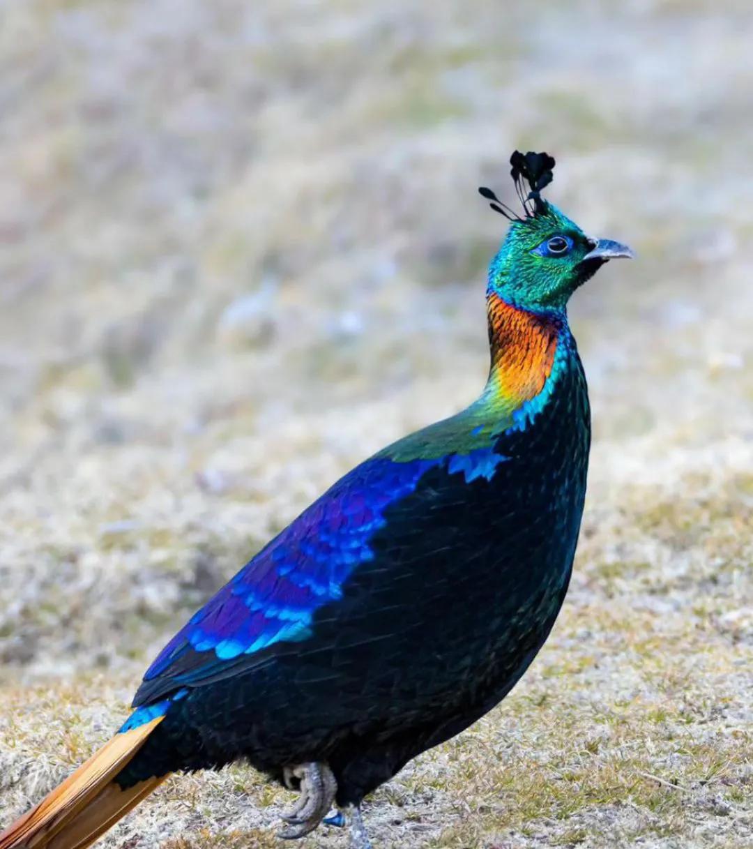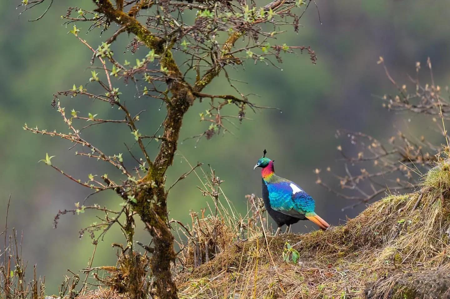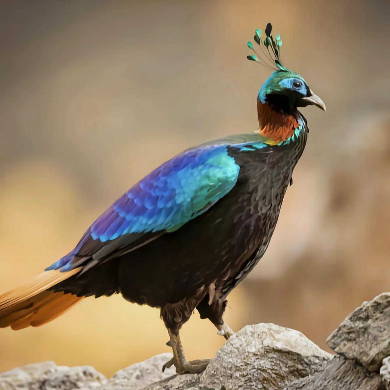 棕尾虹雉:鸡形目、雉科、虹雉属鸟类,属大型鸟类,体长70厘米左右普惠配资,体重约2千克。其在国内分布较为狭窄,主要分布于西藏的南部以及东南部普惠配资,是典型的高山鸡类,栖息于海拔2500-4500米之间终年云雾缭绕的高山针叶林、高山草甸以及杜鹃灌丛中普惠配资,尤其喜欢开阔的山坡阔叶林、混交林、针叶林以及林缘地带。
